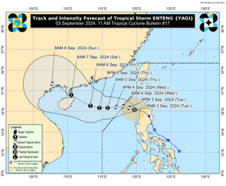 As of 11 a.m. on Tuesday, Tropical Storm "Enteng" re-intensified over the waters of Ilocos Norte, according to PAGASA.
