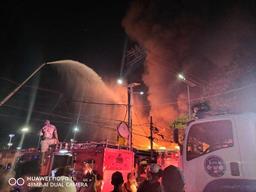 The cause of the fire remains under investigation, and authorities have yet to confirm any casualties or estimate the total damage.