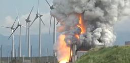 Television footage showed flames shooting out the side of a testing facility before the small building was engulfed in flames and the roof blew off.