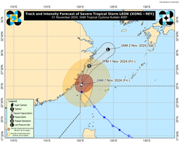 Leon has weakened into Severe Tropical Storm and exited the Philippine Area of Responsibility early Friday morning, November 1, according to PAGASA.