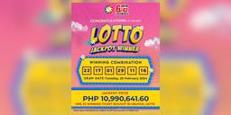 In the latest draw of Lotto 6/42, a fortunate individual clinched the jackpot prize, totaling P10,990,641.60.