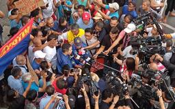 LTFRB Chairman Teofilo 'Jojo' Guadiz personally talked with PISTON National President Mody Floranda in E. Rodriguez Ave., Quezon City where transport groups gathered for the first day of the three-day nationwide transportation strike.