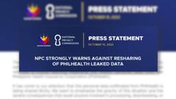 The National Privacy Commission (NPC) warned the public on Tuesday, Oct. 10, against sharing the leaked data from the Philippine Health Insurance Corporation (PhilHealth) after receiving reports of unauthorized distribution of such.