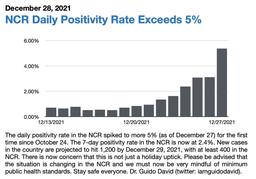 This comes as the daily positivity rate in NCR spiked to more than five percent as of December 27 - the first time since October 24.