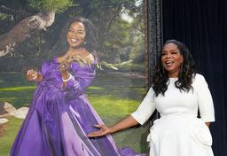The portrait, painted by Chicago-based artist Shawn Michael Warren, depicts Winfrey in a flowing purple gown standing outdoors by a tree.