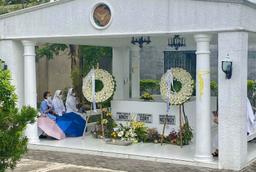 The supporters of the Aquino family, including nuns, paid a visit to the tomb and offered flowers and prayers.