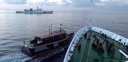 One image from Sunday shared by the Philippine coast guard showed three of four boats involved in the resupply mission being surrounded by seven bigger Chinese coast guard and maritime militia vessels.