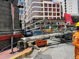 On Thursday afternoon, multiple Meralco posts fell the corner of Quintin Paredes St. and Ongpin St. Binondo, Manila.