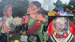 Umbagang Pilipinas, a 12 ft. effigy, displayed the President and Vice-President Sara Duterte engaged in a slapping fight. Marcos is wearing the United States flag as a sash and Duterte’s sash is the flag of China.