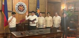 He was accompanied by Executive Secretary Lucas Bersamin, Interior Secretary Benjamin "Benhur" Abalos Jr., and Special Assistant to President Antonio Lagdameo Jr. during the oath-taking ceremony.
