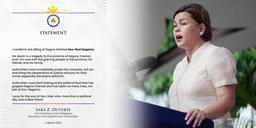 "I condemn the killing of Negros Oriental Gov. Roel Degamo. His death is a tragedy to the province of Negros Oriental, and I am one with the grieving people of the province, his friends, and his family," Duterte said in a statement on Saturday.