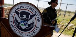 The seal of the U.S. Department of Homeland Security is seen after a news conference in Del Rio, Texas. REUTERS/Marco Bello