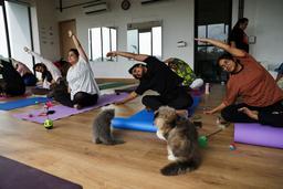 Kittens wandered around the sunlit studio in Vasant Kunj in New Delhi as the session began, some resting on the mats as soft music filled the air, while others stared curiously at the attendees as they switched between yoga poses.