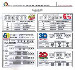 Last October 22, Saturday, the Philippine Charity Sweepstakes had their official draw for 6/55, 6/42, 6D, 3D and 2D lotto at 9pm.