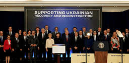 In his remarks, Zelenskiy mentioned the U.S. Marshall Plan to rebuild Europe after World War Two and said: "Today we are laying the foundation for a similar architecture of recovery."
