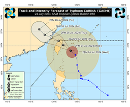 Typhoon Carina intensified early Wednesday morning as it moved closer to Taiwan, according to the 5 a.m. Typhoon Bulletin released by PAGASA.