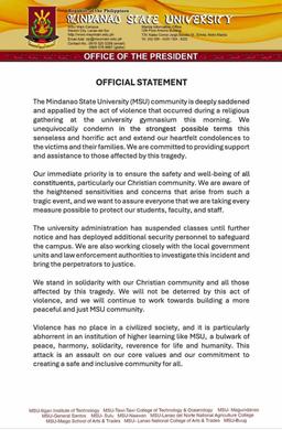 Meanwhile, MSU unequivocally condemns the bombing “in the strongest possible terms” and called the incident “an horrific act”.