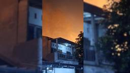 Smoke billows behind a building after a fire broke out at a liquefied petroleum gas filling station near a residential area, in Bekasi, Indonesia, April 1, 2026, in this screengrab from video obtained from social media. @AnaknyaKimSabu via X/via REUTERS