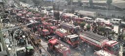 Fire trucks crowded the area, necessitating a counterflow for the traffic. This left only two lanes usable on the southbound lane.