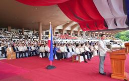 Before his address, Marcos led the raising of the national colors at the Independence Flagpole across the Rizal Monument at the Luneta.