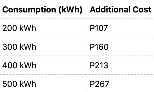 For households consuming an average of 200 kWh per month, this translates to an estimated increase of P107 in their electricity bill.