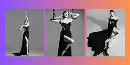 The gown, a minimalist black dress with a cutout, drape, and high slit, accentuated with a silver strap, perfectly embodied Michelle's daring, elegant, and fierce personality.