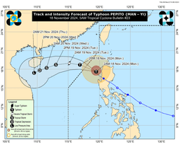 Typhoon Pepito continues its northwestward journey over the West Philippine Sea and is expected to exit the Philippine Area of Responsibility (PAR) by late Monday morning or noon. Despite this, Tropical Cyclone Wind Signals (TCWS) remain raised over various parts of Luzon.