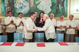 The national government and the National Democratic Front of the Philippines (NDFP) have signed a joint agreement known as the "Oslo Communique," which acknowledges "a principled and peaceful resolution of the armed conflict."