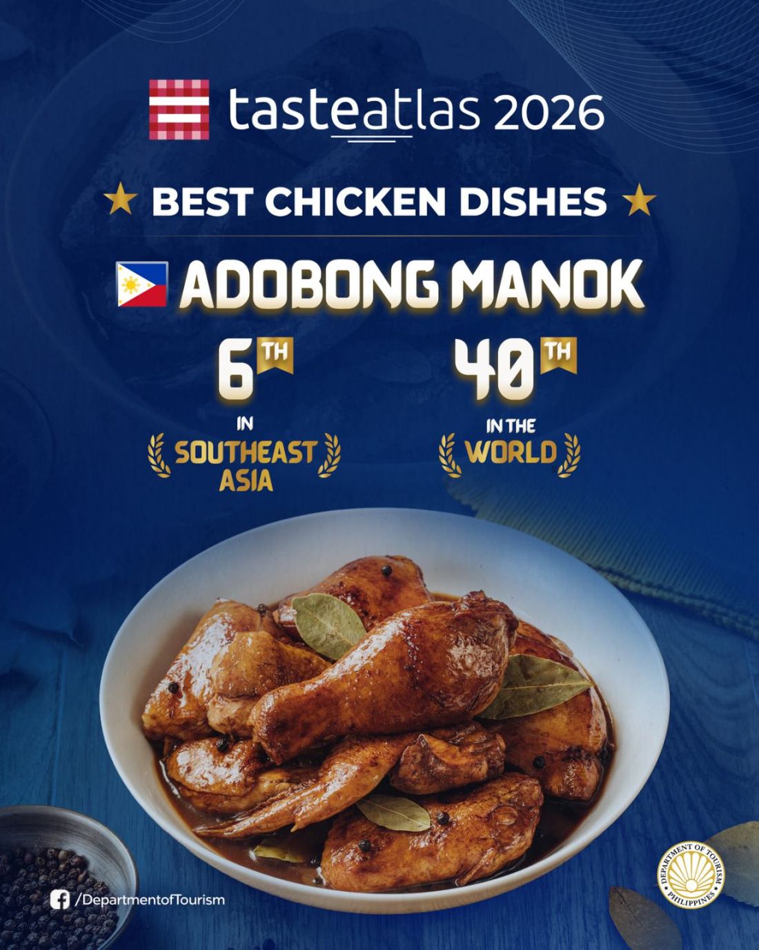MANILA, Philippines - Filipino cuisine continues to make waves on the international culinary stage, as two of the Philippines’ most beloved chicken dishes earned spots in TasteAtlas’ latest April 2026 ranking, the Department of Tourism (DOT) announced.