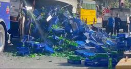WATCH: Tumagilid ang isang truck na kargado ng softdrinks sa northbound ng C5 sa Taguig City.
