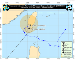 Typhoon Julian has weakened into a tropical depression, according to PAGASA on Friday, October 4.
