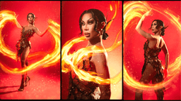 The 27-year-old drag queen lip sync to "AMAFILIPINA" while fiercely fire dancing.