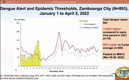 This includes the 85 dengue cases reported for morbidity in week 13 by the City Epidemiology and Surveillance Unit, which is 963% higher compared to the same period in 2021, and 257% higher than the average of 24 cases from 2017 to 2021 in the same period.